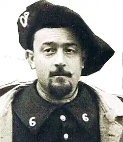 The French Chasseurs alpins, created in the early 1880s, were the first regular unit to wear the military beret as a standard headgear.[2] These mountain troops were issued with a uniform which included several features which were innovative for the time, notably the large and floppy blue beret which they still retain.[3] This was so unfamiliar a fashion outside France that it had to be described in the Encyclopædia Britannica of 1911 as "a soft cap or tam o'shanter".[4]