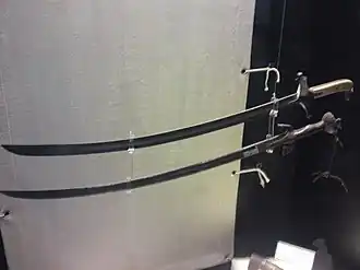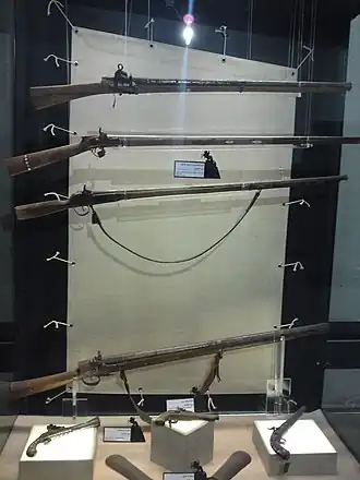The Afsharid army was always a primarily cavalry-based force. It peaked at 375,000 men in 1743, an unsustainable figure that led to the collapse of the empire's economy.[4] Its most notable change compared to the Safavids was the use of firearms. While the Safavids had established a core of musketeers and artillerymen in the 16th century, up to the mid-18th century these men were outnumbered by hosts of mounted warriors armed with lances, swords, and bows supplied from the nomadic and semi-nomadic tribes of the regions. Many of the Shah's household troops continued to be equipped with the same traditional weapons, eschewing the carbines and pistols taken up by European cavalry in the same period.[5] It was under Nader Shah that the majority of troops in the army were equipped with firearms for the first time, necessitating a greater emphasis on drill and training, characteristic of developments that had taken place in Europe in the previous century.[6]