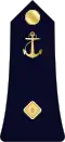 | Amiral | Vice-amiral d'escadre | Vice-amiral | Contre-amiral | Capitaine de vaisseau | Capitaine de frégate | Capitaine de corvette | Lieutenant de vaisseau | Enseigne de vaisseau de 1re classe | Enseigne de vaisseau de 2e classe | |||||||||||||||
