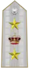 | Generale d'Esercito | Generale in comando d'Armata | Tenente generale | Maggior generale | Colonnello comandante di reggimento | Colonnello | Tenente colonnello | Maggiore | Primo capitano | Capitano | Tenente | Sottotenente | ||||||||||