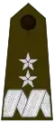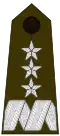 | Generał broni | Generał dywizji | Generał brygady | Pułkownik | Podpułkownik | Major | Kapitan | Porucznik | Podporucznik | ||||||||||||||||||||||||||