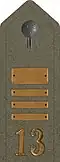 | General | Generallöjtnant | Generalmajor | Brigadgeneral | Överste | Överstelöjtnant | Major | Kapten | Löjtnant | Fänrik | |||||||||||||||