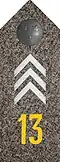 | Regementsförvaltare | Förvaltare | Överfanjunkare | Fanjunkare | Översergeant | Sergeant | Överfurir | Furir | Korpral | Vicekorpral | Menig 4 | Menig 3 | Menig 2 | Menig 1 | Menig | ||||||||||||||||||||||