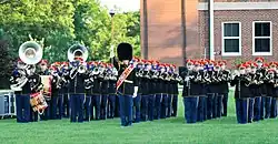 - The Ceremonial Guard conducts many different military tattoos in the Ottawa–Gatineau Region, including the Fortissimo Sunset Ceremony on Parliament Hill in July and the Governor General and Commander-in-Chief's Military Tattoo[6] at Rideau Hall. The latter event honours the King of Canada in his position as Commander-in-Chief of the Canadian Armed Forces. The former emulates the British Beating Retreat while including the practice of lowering of the Canadian flag. Aside from the Band of the Ceremonial Guard, participating units in both events included the Central Band of the Canadian Armed Forces, the Canadian National Drill Team, and the Royal Military College of Canada Band.[7]