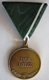 The Militia Medal (German: Milizmedaille) is a military medal of Austria awarded to members of the militia in recognition of services rendered in militia activities. It can only be awarded once.