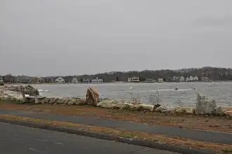 ![]() View of the Mill Cove cottages, taken from across the river near Compo Point | |