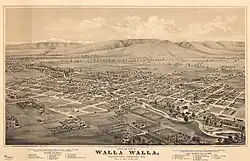A drawing of Walla Walla in 1876, shows the path of Mill Creek through the center of town.