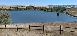 The creek has historically posed a major flooding hazard, flooding the city of Walla Walla 15 times between 1878 and 1931. The Works Progress Administration excavated the concrete channel for Mill Creek through downtown Walla Walla in the 1930s.[21] In 1938, Congress authorized the U.S. Army Corps of Engineers to construct the Mill Creek Flood Control Project, which channelized large sections of the creek upstream and downstream of the city and constructed Bennington Lake, an off-stream flood control reservoir, east of the city.[21] A dam on Mill Creek diverts high winter flows to be temporarily stored in the reservoir. The flood control system is intended to limit peak flows through the city to 3,500 cubic feet per second (99 m3/s).[21] A second dam downstream allows some water from Mill Creek to flow into Garrison and Yellowhawk Creeks, which are used for irrigation in the Walla Walla Valley.[22]