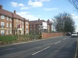 Works began in the late 1930s and were at an advanced stage, with a second track laid between Finchley Central junction and Mill Hill (The Hale) when they were interrupted by the Second World War.[1] The section of line between Finchley Central station and Edgware was closed to passenger services on 11 September 1939.[1][n 1]
