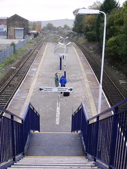 It has no step-free disabled access, with an entrance down a single flight of stairs from street level.[2] From the street level above there are also direct bus services to Blackburn town centre. It is the nearest station to Ewood Park, the home of Blackburn Rovers.