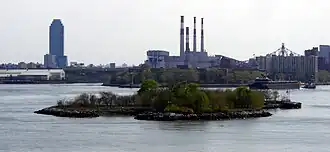 ![]() Mill Rock as seen from Wards Island Bridge. The Citicorp Building and Big Allis are visible in the background. | |