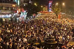 The Millennial Anniversary of Hanoi was officially celebrated from 1 to 10 October 2010, with the great celebration (Đại lễ kỉ niệm) held on Sunday, 10 October, which is also the Liberation Day of Hanoi (1954).[4] The ceremony is considered to be one of the most important events in Vietnam in the year 2010, after the official instruction No. 32-CT/TU of the Politburo of the Communist Party of Vietnam, to organize the event. A committee was established with members from the Politburo, the Government of Vietnam, and the City of Hanoi. The main purpose of the ceremony was to express gratefulness to generations of Vietnamese in the past who contributed to the defence and development of the country, and passing this tradition on to future generations.[2] Exactly 1,000 days before the official ceremony, a countdown clock 17 meters high and 8 meters wide was inaugurated at the Bà Kiệu Temple, in front of Hoan Kiem Lake, on 13 January 2008.[5]