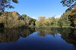 There has been a pond on the site since at least the mid 18th century.[4] Originally it was significantly larger than its current size and in two parts.[4] By the 1960s the pond was starting to silt up.[4] The pond was drained completely in 1966 as part of preparations for large scale commercial and residential development of the area.[4]