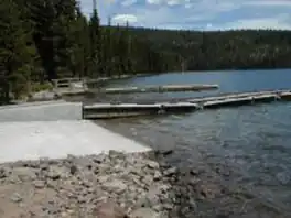 Miller Lake is also used for swimming and boating.[5] Hiking trails in the vicinity provide access to the Mount Thielsen Wilderness and the Pacific Crest Trail.[4] Digit Point Campground at the lake has 64 individual camping sites with access to picnic tables, potable water, and toilets.[5] Mosquito infestations may require repellent or headnets.[6][7]