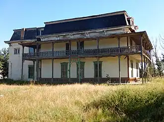 It is a three-story 32-room adobe house on a rise near Cimarron Creek on the edge of Springer. It is made of adobe, has a metal mansard roof with four chimneys protruding above.[2]