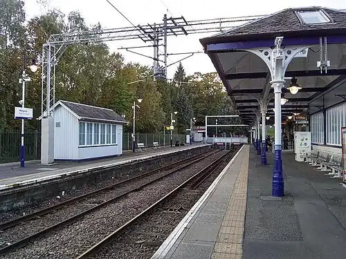 Milngavie railway station serves the town of Milngavie, East Dunbartonshire, near Glasgow in Scotland. The station is sited 9 miles 35 chains (15.2 km) from Glasgow Queen Street, measured via Maryhill.[3] The station is managed by ScotRail, who also operate all services at the station, along the North Clyde and Argyle lines.