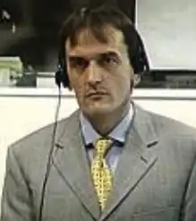 In 1993, the ICTY was established by the United Nations (UN) to prosecute war crimes that took place in the Balkans in the 1990s.[19] On 10 February 1995, Kos, along with 18 other persons allegedly involved in the running of the Omarska camp, was indicted by the Prosecutor of the International Criminal Tribunal for the former Yugoslavia (ICTY), Richard Goldstone.[20] The indictments were reviewed and confirmed by Judge Adolphus Karibi-Whyte of the court three days later.[21] On 20 December 1995, following the signing of the Dayton Agreement, the UN Protection Force in Bosnia and Herzegovina was replaced by the North Atlantic Treaty Organisation (NATO)-led multi-national peace enforcement operation known as the Implementation Force (IFOR). Once the peace agreement had been implemented, IFOR gave way in turn to the NATO-led Stabilisation Force (SFOR) on 20 December 1996.[22] On 28 May 1998, Kos was arrested in Bosnia by British troops serving with SFOR, and was transferred to the ICTY the following day.[15][23] He made his first appearance before the court on 2 June 1998 when he entered pleas of not guilty to all charges against him.[15] On 31 May 1999, the indictment relating to Kos was amended to encompass only the prosecutions of Mlađo Radić, Kos, Kvočka, and Zoran Žigić, and proceedings regarding other persons allegedly involved in the running of the Omarska camp were dealt with separately.[24]