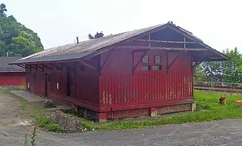 Inside most of the area was built for passenger operations. It has a waiting room with a fireplace and chimney, ticket office, two bathrooms and a cross hallway. The walls of the passenger area are decorated in beaded panelling and horizontal trim. Some of the railway's communications equipment remains in the attic, and freight scales remain in that area.[1]
