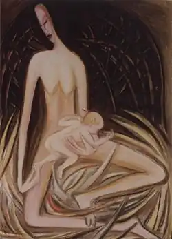 Miluše Poupětová (* born Kautznerová, July 22, 1963 in Vlašim) is a Czech artist. She also teaches students of applied art at VOŠUP SUPŠ (Industrial Art College and Secondary School) in Prague. Her paintings are based on expressionism and monumental painting, and include abstract as well as figural elements. Her paintings follow her individual path to her soul, she is inspired by the physical experience of her own femininity as well as by oriental, Christian and psychoanalytic philosophy. The initial dark and exalted expressiveness of her early art work was gradually changed by brighter colours, well-thought-out compositions, more harmony and a more detached point of view.
