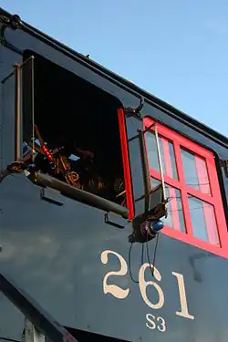 In June 1995, No. 261 hauled a one-way excursion, sponsored by Trains Magazine, over five days from Minneapolis to Scranton, Pennsylvania, where it participated in Steamtown National Historic Site's grand opening celebrations the following month.[3][4] Originally, it was supposed to doublehead with Pere Marquette 1225 from Michigan through Canada and into New York state, before continuing south.[3][5] While No. 261 was in Chicago, the doubleheader was cancelled due to routing issues. No. 261 operated on an alternative route over CSX into Pennsylvania and heading to New York via the Buffalo and Pittsburgh Railroad, while No. 1225 remained in Michigan.[3][5] The 4-8-4 stayed for one year in Scranton, pulling numerous excursions, including rare-mileage trips, a rare snowplow run, and a doubleheader excursion with New York, Susquehanna and Western 142 between Scranton and Syracuse, New York.[6][7] A Hancock 3-chime whistle was temporarily added to the locomotive and then replaced with an AT&SF 6-chime whistle, which remains on it today, but still also keeping its original non-Hancock 3 chime whistle and Leslie A-125 air horn. In early 1996, No. 261 returned to the Midwest. On its way home, the locomotive made its first runs over the newly formed BNSF Railway. It pulled a few sets of excursions in 1997 and 1998 over BNSF and TC&W trackage.