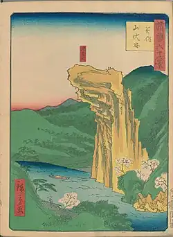 Mimasaka Province (美作国, Mimasaka no Kuni; Japanese pronunciation: [mʲi.maꜜ.sa.ka (no kɯ.ɲi)][1]) was a province of Japan in the area that is northern Okayama Prefecture in the Chūgoku region of western Japan.[2][3] Mimasaka bordered Bitchū, Bizen, Harima, Hōki, and Inaba Provinces. Its abbreviated form name was Sakushū (作州). In terms of the Gokishichidō system, Mimasaka was one of the provinces of the San'yō circuit.