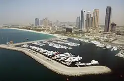 Mina Seyahi (Al Mina Al Seyahi) refers to an area in the city of Dubai, UAE. The literal meaning of the phrase "Al Mina Al Seyahi" is "Port of Travellers". The Mina Seyahi area covers a part of Jumeirah Beach and includes the Dubai International Marine Club (formed in 1986), which includes a 291-berth marina.