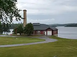 Minaki Lodge (/mɪˈnæki/ mi-NAK-ee), formerly part of the chain of Canadian National Hotels, was originally built in 1914 by the Grand Trunk Pacific Railway (GTPR).[1] Located on the route of the National Transcontinental Railway (NTR) at Minaki, Ontario, between Sioux Lookout and Winnipeg, where the railway crosses the Winnipeg River, the rustic resort hotel named Minaki Lodge and the railway station, also called Minaki, is an Ojibwa word that has been variously translated as "beautiful water" or "good land."[2]