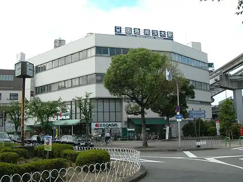 In fiscal 2019, the Hankyu station was used by an average of 46,939 passengers daily and the Osaka Monorail portion was used by 31,198 passengers daily.[4]