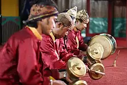 Music of Minang is a traditional and contemporary ethnic variety of Indonesian music that grows and develops in the Minangkabau culture.[1][2][3] Music is generally played by musical instruments such as talempong, saluang, Minang rabab, serunai, rebana, aguang (gong), gandang, gambus, and violin. However, for traditional events such as weddings, Islamic rebana or gambus are never used.[4]