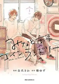 From April 1, 2019, through May 15, 2019, Kadokawa Corporation held a contest titled "Light-hearted Romance BL Manga Original Work" through Pixiv, where the winners would be able to have their work be adapted into a manga series.[5] On April 6, 2019, Yuzu Tsubaki posted a story titled Wash My Heart! on Pixiv and submitted it to the contest.[6] The entry won 2nd place,[5] and it was later picked it up for a manga serialization under the title Minato Shōji Coin Laundry, with Sawa Kazume providing the illustrations.[7] It has been serialized digitally on Gene Pixiv since December 7, 2019.[7] The chapters were later released in four bound volumes by Kadokawa under the Gene Pixiv Series imprint.[8]