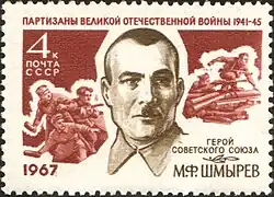 Minay Filippovich Shmyryov (Belarusian: Міна́й Пілі́павіч Шмыро́ў, romanized: Minaj Pilipavič Šmyroŭ, Russian: Мина́й Фили́ппович Шмырёв; 23 December 1891 – 3 September 1964), also transliterated as Minay Shmyrev and Minai Shmyrev, was one of the leaders of the Belarusian partisan resistance against the German occupation during World War II.