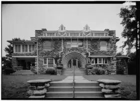 The building is located in the residential/mixed South Hyde Park neighborhood of Kansas City. Designed by noted architect Louis S. Curtiss it reflects a Prairie School practice of combining Second Empire, Art Nouveau and Neoclassical architectural elements. The building is asymmetrical yet almost rectangular with projecting bays on the north, south, west and northwest. The three-story structure is above grade on a full basement with approximate maximum dimensions of 75 by 55 feet (23 by 17 m). The foundation is uncoursed large block and the primary wall material is rock faced Jackson County limestone with a random pattern. The facade is the east side and fronts Oak Street. Features of the facade include a stone veranda and the central main entrance which is approached by seven wide stone steps. The entry arch is ornamented as is the stairway and approach.[2]