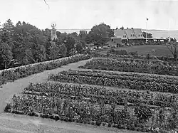 The farm was also home to pigs, geese, ducks, chickens and turkeys. The produce of the farm and gardens was shipped to Montreal by night train during the winter months, providing the family with fresh food throughout the year. The barn was surrounded by several outbuildings, including a creamery, smaller barns, and living quarters for the workers.