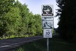 Saint Croix Scenic Byway is a 124-mile (200 km) route that follows the St. Croix River, which forms part of Minnesota's eastern border. The route runs from U.S. Highway 10 near Hastings to Sandstone. The byway connects the flatter landscapes of southern Minnesota with the forested, hilly landscapes of northern Minnesota.[20]