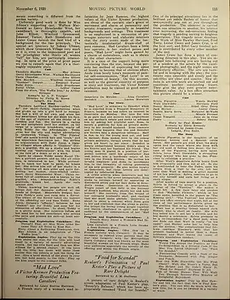- ^ "Moving Picture World". Periodical. Chalmers Publishing Company. November 1920 – via lantern.mediahist.org.