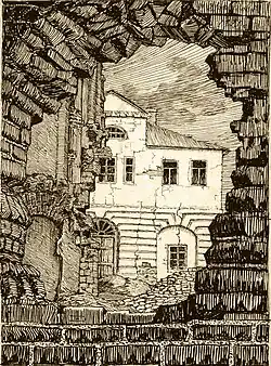 ![]() Ruins of Minsk Castle (drawing by J. Drazdowicz) | |