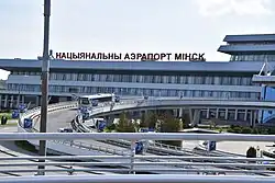Minsk National Airport (Belarusian: Нацыянальны аэрапорт Мінск, romanized: Natsyyanalny aeraport Minsk, [natsɨjaˈnalʲnɨ aeraˈport mʲinsk]; Russian: Национальный аэропорт Минск) (IATA: MSQ, ICAO: UMMS), formerly known as Minsk-2, is the main international airport in Belarus, located 42 km (26 mi) to the east of the capital Minsk. It geographically lies in the territory of Smalyavichy Raion but is administratively subordinated to the Kastrychnitski District of Minsk. The airport serves as hub of the Belarusian flag carrier Belavia and the cargo carriers TAE Avia,[2] Genex,[3] and Rubystar Airways.[4]