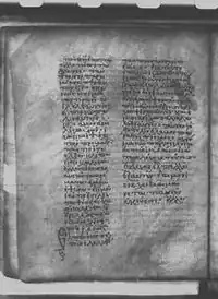 - ^ a b c Aland, Kurt; M. Welte; B. Köster; K. Junack (1994). Kurzgefasste Liste der griechischen Handschriften des Neues Testaments. Berlin, New York: Walter de Gruyter. p. 96. ISBN 3-11-011986-2.