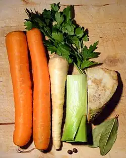 - ^ "Use Carrots, Onions and Leeks for German Soup Greens". Archived from the original on 20 August 2016. Retrieved 28 March 2014.