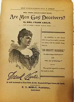 - Mrs. Frank Leslie (1896). Are we all deceivers?: The lover's blue book. New York: F. Tennyson Neely.