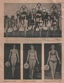 Concurso Dominicano de Belleza 1969 was held at La Concha Acústica of El Embajador Hotel, in Santo Domingo on May 24, 1969. Rocio García Báez was crowned Miss Azúcar and represented the Dominican Republic at the Miss Universe 1969 pageant.[1] The First Runner-up Sandra Simoné Cabrera Cabral won the Miss Café title and represented the Dominican Republic at the Miss World 1969.[2] The Second Runner-up was Andreita Grullón Luna won the Miss Merengue Title participated at the annual Fair of the Chinita .[3] in Venezuela.[4] More than 30 participants entered the contest. 18 candidates where selected as semi-finalist the first night of the contest. All contestants competed in swimsuit and evening gown