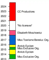 | 2013 | Limburg | Karolien Termonia[23][24] | Appointed | Unplaced | Miss Exclusive Belgium Org. | |