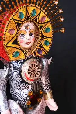 The resulting 134 dolls have dimensions of about 45x16x15cm and took on average 25 hours to complete.[7] Designs included dancers, lucha libre figures, mermaids, Godzilla figures, ladies-of-the-night, goddesses, cats as well as one made in the images of famous women in Mexico.[1][3] The dolls were given names such as Siempre Viva, Hanami, La Memoria, Lupita Pecadora, Lupita Auxiliadora, Amalia, Gena, Adela, Encanto, Lupe la Brava and Andy.(mktokyo) Andy is a homage to Andy Warhol.[8]