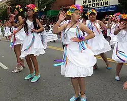 MCCLA is active in the local community with supporting a series of annual events in the neighborhood such as the Carnaval parade, Dia de los Muertos, and others. Since 2003, MCCLA has been hosting an annual mole sauce competition.[7] The MCCLA is very active in the annual Carnaval parade, teaching related dance classes, building floats for the parade, help with designing Carnaval costumes, creating banners and posters, and more.[8] Additionally MCCLA is active in the annual Dia de los Muertos in the Mission District with erecting alters in Garfield Square park.[8] They have hosted an annual neighborhood art exhibition in February, Corazón del Barrio, where local artists and craftsmen sell works, prints, jewels, pottery, and weaving.[8]