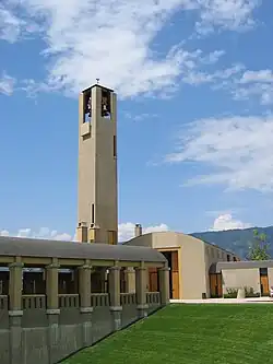 Olson Kundig Architects were commissioned in 1996 to rebuild the winery and associated buildings. This was the first winery project undertaken by the design firm. The work was completed in 2002 at an estimated cost of thirty-five million Canadian dollars.[3][7][9] The centrepiece and focal point of the design was a twelve-story and 85 foot high bell tower, with four bells cast by Fonderie Paccard in Annecy, France who also crafted the bells for St. Patrick's Cathedral in New York and Sacré-Cœur in Paris. The largest bell weighs nearly 800 kilograms.[10]