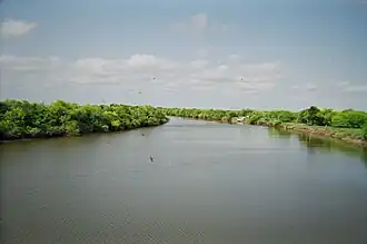 The Mission River is a river located in Texas, in the United States of America. It is formed by the confluence of Blanco and Medio creeks in central Refugio County (at 28°19' N, 97°19' W) and runs southeast, past Refugio, for 24 miles (39 km) to its mouth on Mission Bay, an inlet of Copano Bay (at 28°10' N, 97°10' W). It traverses gently undulating coastal prairies surfaced by clay and loam and spotted by groves of hardwoods and pines. It is home to myriad waterfowl and native slough grasses.