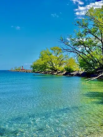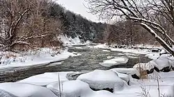Two major river valleys feed into the lake. The Credit River is by far the longest with the heaviest flow, it divides the western side of Mississauga from the central/eastern portions and enters the lake at the Port Credit harbour. The indented, mostly forested valley was inhabited by first nation peoples long before European exploration of the area. The valley is protected and maintained by the Credit Valley Conservation Authority (CVCA).[39]