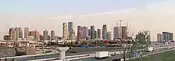 The growth of Mississauga was initially attributed to its proximity to Toronto.[5] However, during the latter half of the 20th century, the city attracted a diverse and multicultural population. Over time, it built up a thriving, transit-oriented central business district of its own, which is now known as Mississauga City Centre.[6][7] Malton, a neighbourhood of the city located in its northeast end, is home to Toronto Pearson International Airport, Canada's busiest airport, as well as the headquarters of many Canadian and multinational corporations. Mississauga is not a traditional city, but is instead an amalgamation of three former villages, two townships, and a number of rural hamlets (a general pattern common to several suburban GTA cities) that were significant population centres, with none being clearly dominant, prior to the city's incorporation that later coalesced into a single urban area.[8]