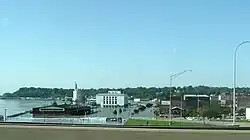 River stages at the Quad Cities of Iowa and Illinois were above major flood stage for 51 days exceeding the previous record of 31 days set in 2001.[23] The river remained above flood stage levels for over 96 days.[24] The crest of 22.7 feet (6.9 m) on 2 May 2019 was nearly a tenth of a foot above the record stage set in 1993. Temporary flood barriers failed on 30 April 2019 flooding portions of downtown Davenport, Iowa.[23][25][26]