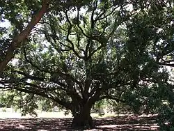 Missouri City's historic Freedom Tree Park is named after the Freedom Tree, which sits along Misty Hollow Drive between Glenn Lakes and Lake Olympia boulevards, at the former Palmer Plantation site. [19]